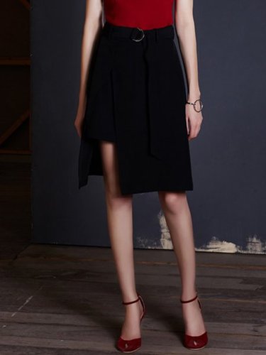 Black Asymmetric A-line Midi Skirt Discounted at only: US$ 52.00