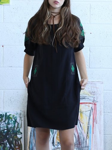 Black Embroidered Short Sleeve Shift Plain Mini Dress Discounted at only: US$ 132.00