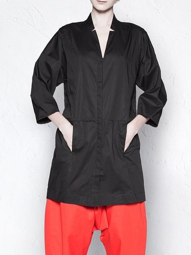 Black V Neck Long Sleeve Plain Tunic Discounted at only: US$ 96.00