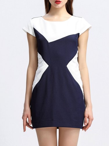 Blue Crew Neck Simple Polyester Mini Dress Discounted at only: US$ 215.00