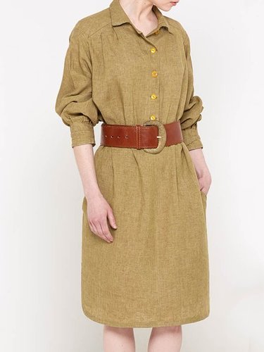 Plain Linen Casual Long Sleeve H-line Shirt Dress