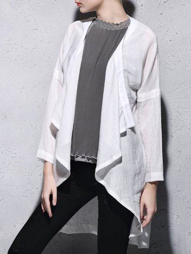 White Linen Long Sleeve Plain Asymmetric Coat Discounted at only: US$ 56.00