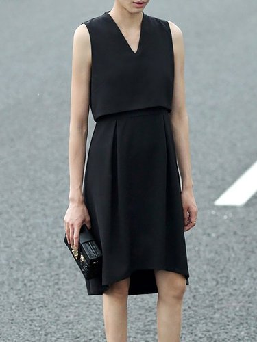 Black Asymmetric Sleeveless A-line Midi Dress Discounted at only: US$ 79.00